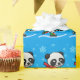 Um inverno bonito, ou o feriado do Natal, ilustração de um urso de panda que veste um lenço vermelho e skates de gelo estão patinando. Os flocos de neve de queda estão no fundo. Em um fundo dos azul-céu. As opções, mantêm como é, ou personalizam e escolhem toda a cor do fundo, usam a seleção do eyedropper e do avanço para considerar mais da escala de cores. Divertimento para miúdos ou adultos para um aniversário ou uns eventos sazonais.