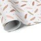 A soothing pattern of soft brown, beige, and tan feathers scattered on a textured white background, accented with small circular details for elegance.