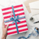 Papel De Presente Modelo Vermelho de Natal clássico com risca branca