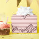 Papel de embrulho moderno e feminino com ouro rosa personalizável feliz aniversário num lindo fundo rosa, mauve, rosa de listras de ouro.