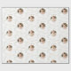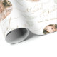 Christmas gift wrapping paper feature modern Merriest Christmas script and pine tips, with personalized family name and two photos in sage green and gold. simple and elegant.