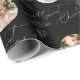 Christmas gift wrapping paper feature modern Merriest Christmas script and pine tips, with personalized family name and two photos in sage green, black and white. simple and elegant.