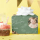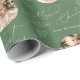 Christmas gift wrapping paper feature modern Merriest Christmas script and pine tips, with personalized family name and two photos in sage green and white. simple and elegant.
