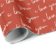 Papel de embrulho de presente moderno com um fundo vermelho romântico que pode ser mudado para qualquer cor, com um roteiro elegante "eu te amo" em branco.