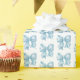 Papel de embrulho com laço azul bebê em aquarela. Adicione um toque doce e elegante aos seus presentes com este encantador papel de embrulho que apresenta um padrão de laço em aquarela azul bebê. Perfeito para um chá de bebê para menino ou um chá de noiva com o tema “Algo Azul Antes de Eu Fazer”, este design combina elegância clássica com um visual moderno e divertido.