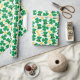 Este papel de embrulho apresenta uma Rua divertida e festiva. O chapéu de duende, as camisas verdes e as moedas de ouro aparecem em fundo branco.