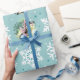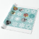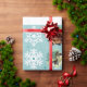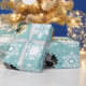 Espuma marinha ou cor turquesa com invólucro de presente de padrões de flocos de neve. Use suas próprias fotos favoritas para personalizar este invólucro de presentes de Natal com fotos de Férias. Fotos orientadas ao quadrado funcionam melhor