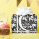Papel De Presente Monograma C Padrão Floral Branco e Preto Inicial