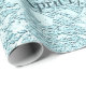 Folha de papel de embrulho de recepção de casamento. Encapsulamento personalizado com padrão de monograma floral de turquesa verde-teal. Moderno, chique, elegante, tenda, elegante, na moda, bonito e metálico suculento. Para alterar a tipografia, clique em editar design. Imagem copyright Marg Seregelyi Fotografia.