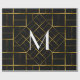 Um design simples contudo elegante que consiste em um art deco inspirou o teste padrão geométrico compor de quadrados e de linhas espelhados ouro. Inclui um monograma branco inteiramente customizável no meio.