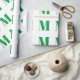 Papel de moldagem elegante de presente personalizado com padrão monograma verde e branco moderno. Personalize todos os presentes com a letra individual, as iniciais, o monograma. Excelente de Natal, feriados e aniversários.