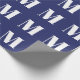 Papel De Presente Monograma inicial personalizado azul e branco do m