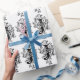 O papel inicial de empacotamento de padrão floral branco e preto do Monograma J pode ser personalizado com uma imagem, nome, texto, logotipo ou foto. Mude o fundo branco para qualquer sombra de azul, verde, amarelo, laranja, rosa, vermelha, marrom e roxa. Excelente para embrulhar presentes de Natal, aniversário, chá de fraldas ou casamento.