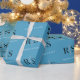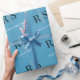 Papel De Presente Monograma preto inclinado e nome branco, azul