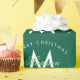 Um na moda personalizado design de monograma "Feliz Natal" com uma cor verde de fundo Xmas. Um design festivo ideal para o feriado. Personalize o monograma e faça dele seu!