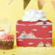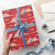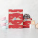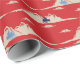 Este papel de embrulho festivo com estilo vintage é perfeito para nos embrulhar presentes de Natal ou um presente para o seu moto de neve favorito. este presente contém um padrão de motos de neve, montanhas de neve e nuvens lisas em tons de azul e marfim ou creme colocados sobre um fundo vermelho.