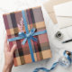 This captivating wrapping paper features a modern, oversized plaid design in a truly moody and rich autumnal palette. The bold, overlapping blocks of color include deep plum/eggplant purple, warm maroon red, and striking shades of burnt orange and terracotta. This design is highly on-trend and perfect for creating a sophisticated, artistic presentation for gifts during the fall season, Thanksgiving, or any occasion where you desire a warm, non-traditional color scheme.