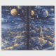 Este design de papel embrulhado mesmernante apresenta uma paisagem celestial sonhadora, banhada em tons ricos de marinho e ouro. A cena inclui planetas luminosos, estrelas brilhantes e um céu lua que lança um brilho mágico sobre o sereno campo. Os templos antigos, rios fluentes e colinas rolantes criam um reino da fantasia, evocando vibrações mitológicas e cósmicas.