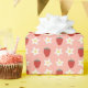 Papel de embrulho bonito e divertido, com uma sensação de verão com morangos e flores.