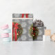 Uma rica cinza de aço repleta de tradicionais mortes de férias e arcos vermelhos, simples e elegantes. Excelente para presentes de Natal clássicos