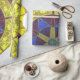 Papel De Presente Mosaico Caleidoscópio Flor Amarelo Azul e Laranja