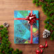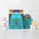 Papel De Presente Mosaico Caleidoscópio Flor Azul Verde e Laranja
