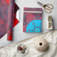 Papel De Presente Mosaico Caleidoscópio Flor Vermelho e Azul