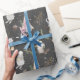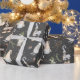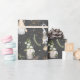 Moso de Natal bonito e gnomos esquiando sobre fundo de cinza escura com cobertura de floco de neve. A cor de fundo pode ser alterada.