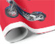 Motociclos azuis fazem um bonito padrão em um fundo vermelho festivo, perfeito para personalizar seu papel.