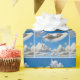 Rato bonito dormindo em uma pena branca flutuando no céu de verão