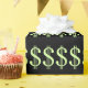 Características deste design do papel de envolvimento muitos sinais de dólar verdes ($) em um fundo preto. Seria um papel parvo a usar-se ao dar um presente a alguém que trabalha no sector financeiro.
