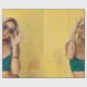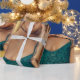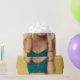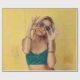 Papel De Presente Mulher em bralette azul segurando óculos de sol co