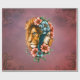 Mulher maravilhosa cujo cabelo longo e fluido brilha em um azul profundo, lembrando a vastidão do oceano. Seu rosto, que mostra características suaves e expressivas, é parcialmente escondido por uma majestosa cabeça de leão. O homem de leão brilha numa laranja brilhante, que cria um forte contraste com as delicadas características da mulher, simbolizando força e graça ao mesmo tempo. A design exude uma atmosfera mágica que captura tanto a força quanto a delicadeza da mulher representada.