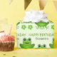 Esta design adorável mostra um sapo verde-giro com texto "Feliz Aniversário". Personalizou-o com o nome do seu filho, faça dele um presente único para a celebração do seu aniversário de criança.