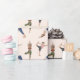 Embrulhe presentes com este papel de embrulho temático de yoga projetado pela Destei. O design apresenta um fundo bege claro com ilustrações repetidas de mulheres praticando yoga em diferentes poses. Uma flui para a pose da dança, outra segura o cachorro olhando para baixo e a terceira se equilibra na pose da árvore. Cada uma usa um traje diferente com combinações de cores rosa e preto, azul e branco, e verde e marrom. O fundo bege mantém o design limpo e equilibrado, enquanto as poses ilustradas trazem movimento e energia para o padrão.