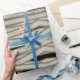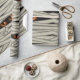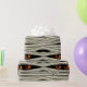 Uma múmia embrulhada assustadora com olhos laranja brilhantes e gaze clássico embrulhando decora este belo presente de Halloween. Também disponível em uma paleta de cores verdes. Procure ID685 para ver os suprimentos e acessórios da parte coordenadora com este padrão múmico do excelente.