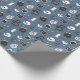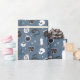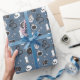O papel de embrulho chico "Spooky" apresenta um padrão de cobras, cristais místicos, poções, espelhos, velas, potes, crânios, cartões de tarô e poções sobre fundo azul empoeirado.