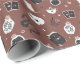 O papel de embrulho chico "Spooky" apresenta um padrão de cobras, cristais místicos, poções, espelhos, velas, velas, crânios, cartões de tarô e poções sobre um fundo de terracota de tons escuros.