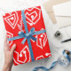 Este papel de embrulho tem um design moderno do século médio de um coração branco esparso, que se encontra num campo de vermelho.
