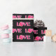 Papel de embrulho de picleball. A bola-de-coleira-rosa-quente é o O em AMOR nesta camiseta escura. Mostre seu amor pelo jogo de picleball no campo e fora dele. Bom para um torneio de Dia de os namorados, evento de Solteiros de Pickleball ou qualquer vez que você quiser compartilhar o amor do jogo com seus companheiros de seleção.