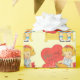 Este papel de envolvimento caracteriza uma imagem de uma rapariga que guardara uma torta, com dois corações vermelhos atrás dela. O texto lê, "mim é Torta-ning para você, namorados!" O fundo amarelo pode ser personalizado, se desejado.