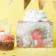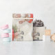 Criança de safra bonita vestindo uma rede de cabelo e segurando um prato com biscoitos frescos assados de Natal em fundo de damasco de marfim. Um maravilhoso presente de Natal para o cozinheiro ou amante de arte vintage na sua família.