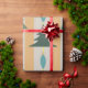 Este papel de embrulho tem uma design moderna do século médio de árvores de Natal e ornamentos pendurados numa garagem com fundo de ouro e prata.