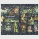 Colagem de Natal da era vitoriana, que apresentava o Pai Natal em um roupão tradicional marrom e verde, com um saco de brinquedos, crianças felizes, menina com holly, meninos tocando trompetes, anjos cantando, sinos, notas musicais, evocando a "Noite Silenciosa", Cartões de natal tipográficos em roteiro caligráfico, Maravilha de inverno na floresta com cervo e vila à distância, contra fundo azul escuro e neve, estalgia, perfeita para os projetos de embrulho de presente e mergulho.