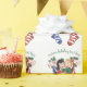 Ilustração de Vintage design de Natal Feliz com gêmeos pendurados em meias de Natal decorados com folhas e bagas sagradas. A menina está na meia listrada azul e branca e o menino está na meia listrada vermelha e branca. Bobo, imagem engraçada e humorística, excelente para toda a família!