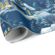 Este padrão mostra uma cena tranquila de uma vila de inverno à noite. O design é dominado por vários tons de azul escuro e branco, dando-lhe uma atmosfera fria e pacífica. Ele apresenta: Edifícios cobertos por neve: O padrão repete imagens de pequenas casas e igrejas com éguas, todas aninhadas em neve profunda. Janelas quentes e brilhantes: Um forte contraste é criado pela luz amarela ou ouro que se espalha das janelas das casas, sugerindo calor e conforto dentro na noite fria. Paisagem de inverno: Os edifícios estão rodeados de árvores e arbustos com neve. O estilo geral lembra um clássico impressão de Natal ou de têxteis de férias, talvez para papel flanela ou de embrulho.