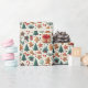 Papel de embrulho de Natal com canas doces e árvores de Natal nele