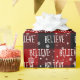 White BELIEVE texto com flocos de neve em fundo de xadrez de búfalo vermelho e preto. O texto e a cor podem ser editados.