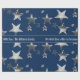 Papel De Presente Natal Azul Padrão das Estrelas de Prata Faux