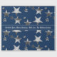 Estrelas de Natal Padrão Faux Silver Elegante Quebra de Natal, Papel Azul de Presente com texto personalizado "Desejamos-Te Um Feliz Natal! Com amor, a família Williams", você pode alterar ou excluir o texto